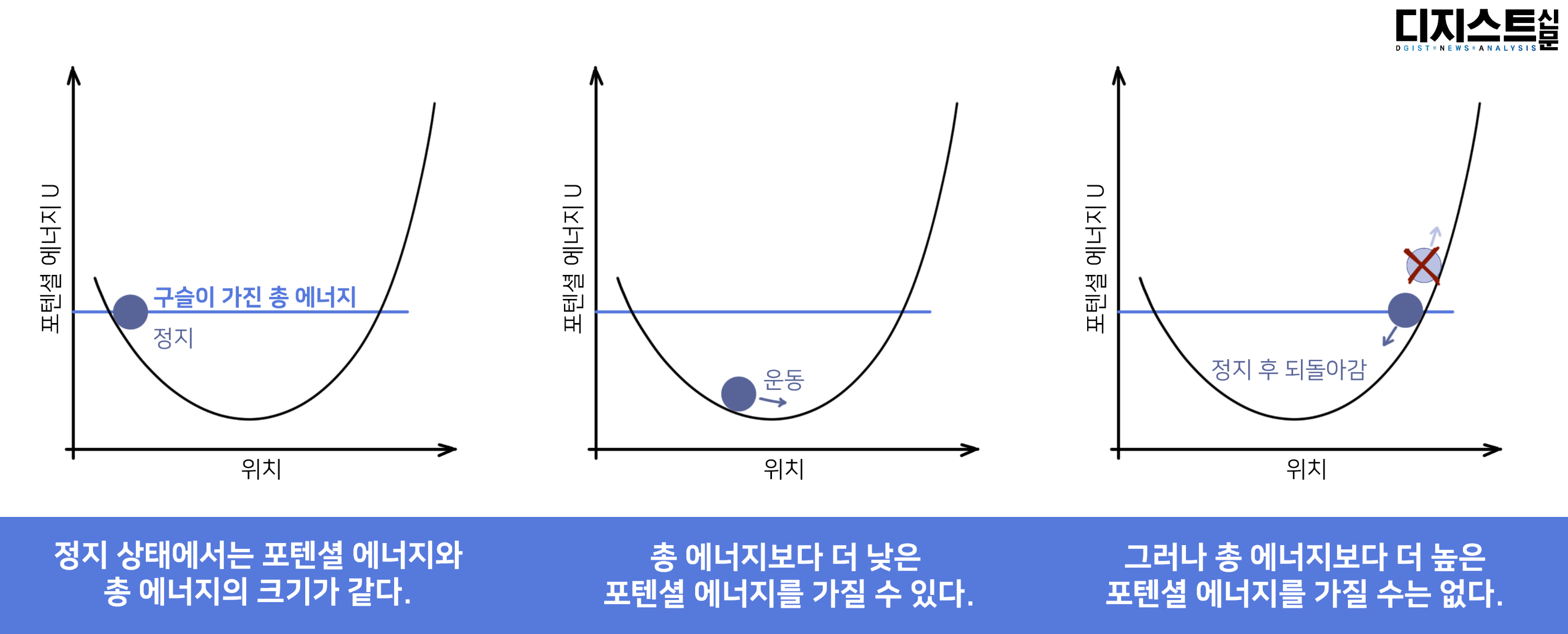 물체가 고전적으로 움직일 때는 자신이 가진 총 에너지보다 큰 에너지 장벽을 넘을 수 없다. U자형 레일 위에 정지한 구슬을 놓으면, 구슬은 미끄러져 내려간 후 반대편으로 올라가다가 처음 높이에 도달하면 멈춘다. 그리고 더 높이 올라가지 못한 채 반대로 미끄러져 내려온다. 구슬이 가진 총 에너지는 시작 높이의 포텐셜 에너지만큼이므로, 그보다 높은 에너지 장벽을 넘지 못하는 것이다.