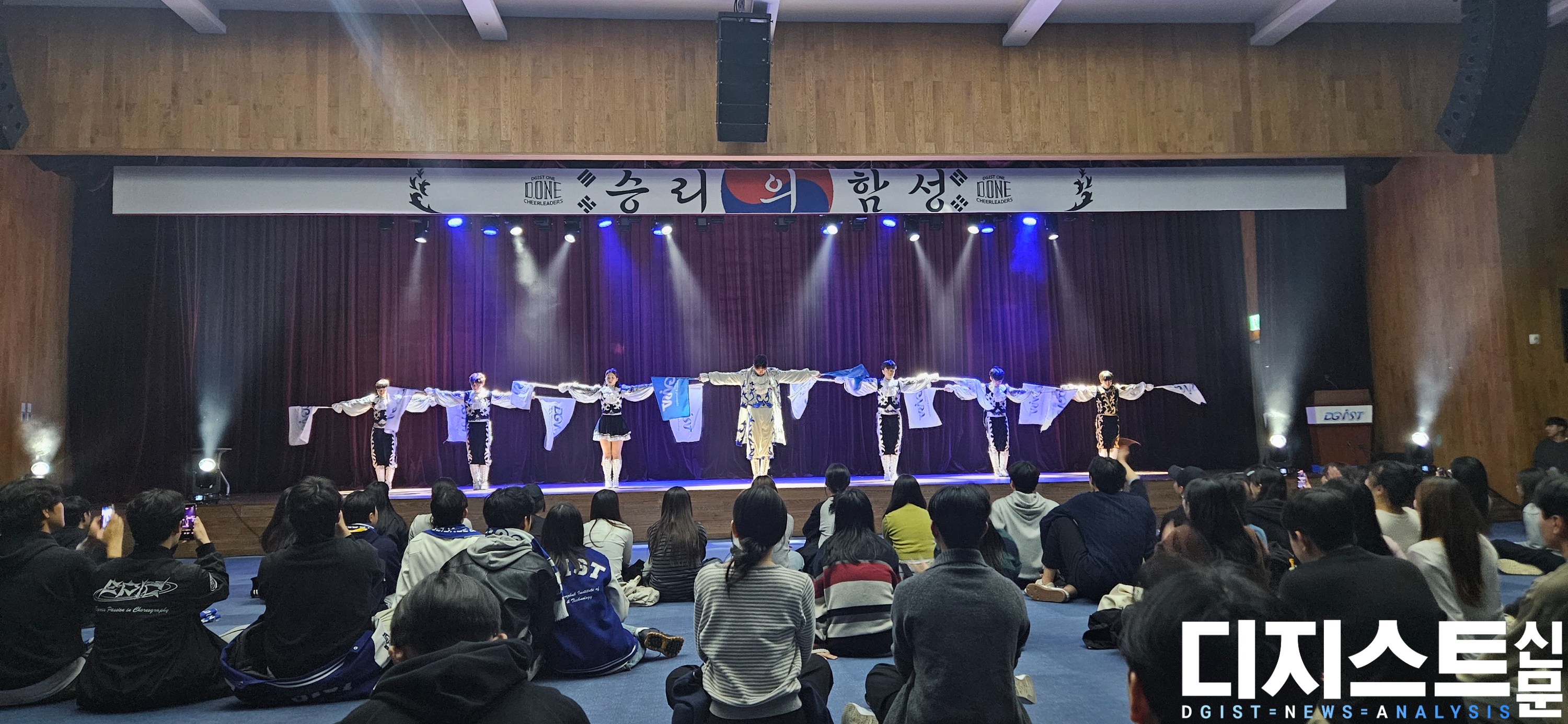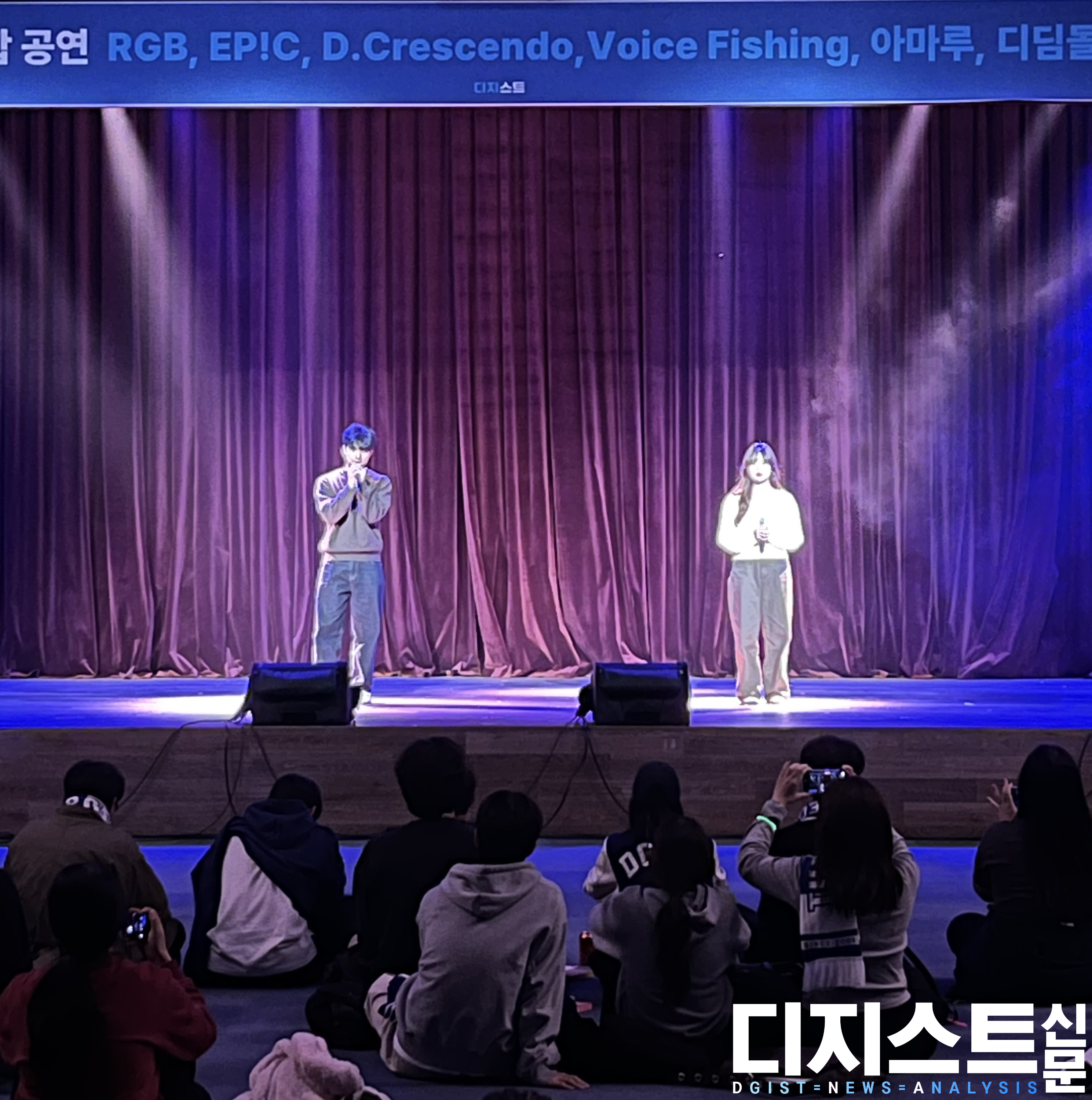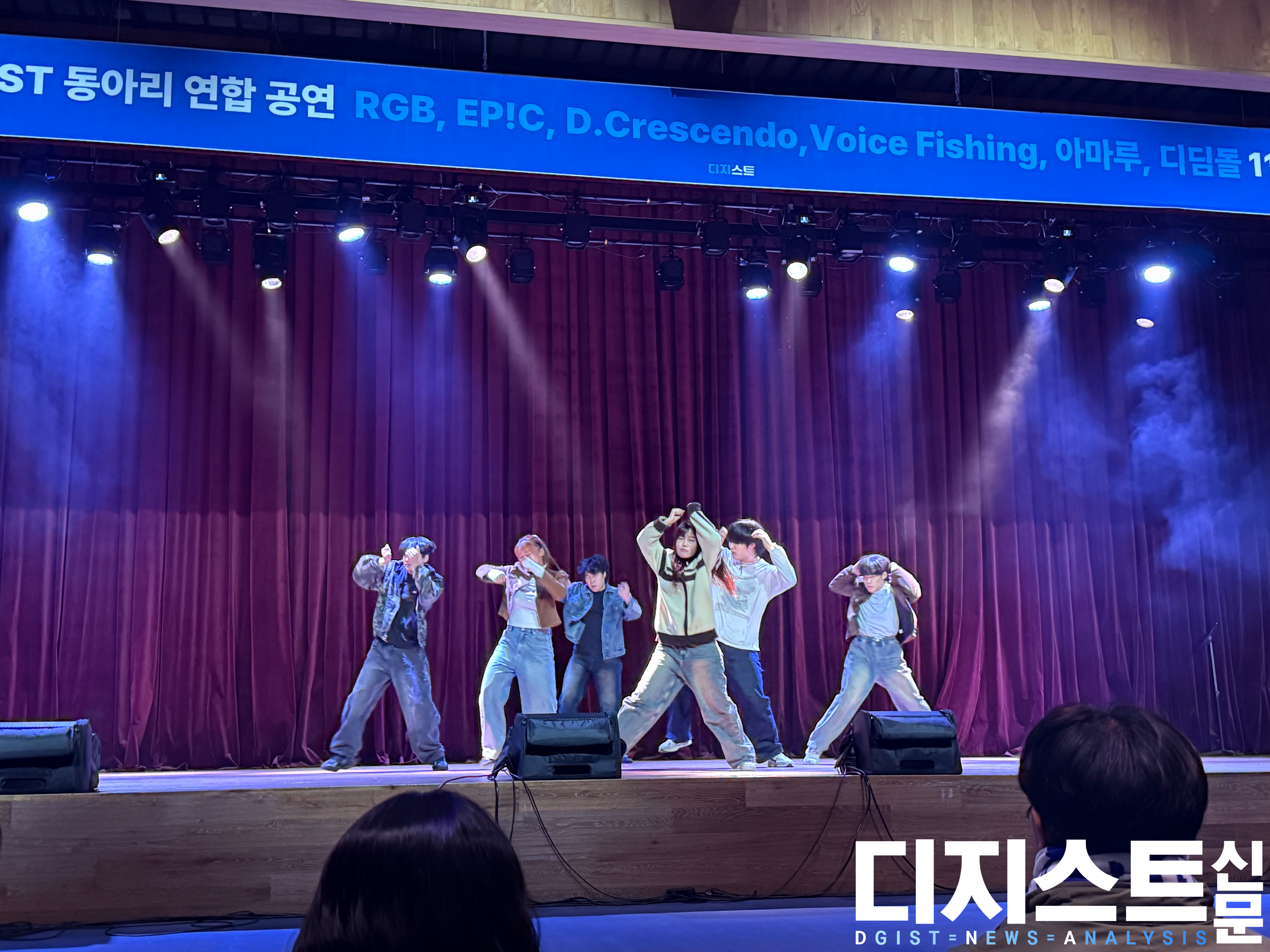 지난 5일과 6일 양일간, E1 컨실리언스홀에서 자치단체인 DGIST 응원단 D.ONE을 필두로 여러 공연 동아리가 그간 연습한 무대를 선보였다. 5일에는 DGIST 응원단 D.ONE의 응원제가, 6일에는 동아리 연합회에서 주관한 동아리 연합 공연이 진행되었다. 동아리 연합 공연에는 ▲RGB ▲D.Crescendo ▲디딤돌 ▲EP!C ▲Voice fishing ▲아마루가 참여해 무대를 빛냈다. 공연이 열린 컨실리언스 홀 입구에서는 동아리 연합회가 붕어빵 배부 행사를 진행하며 본격적인 축제 분위기를 자아내었다.