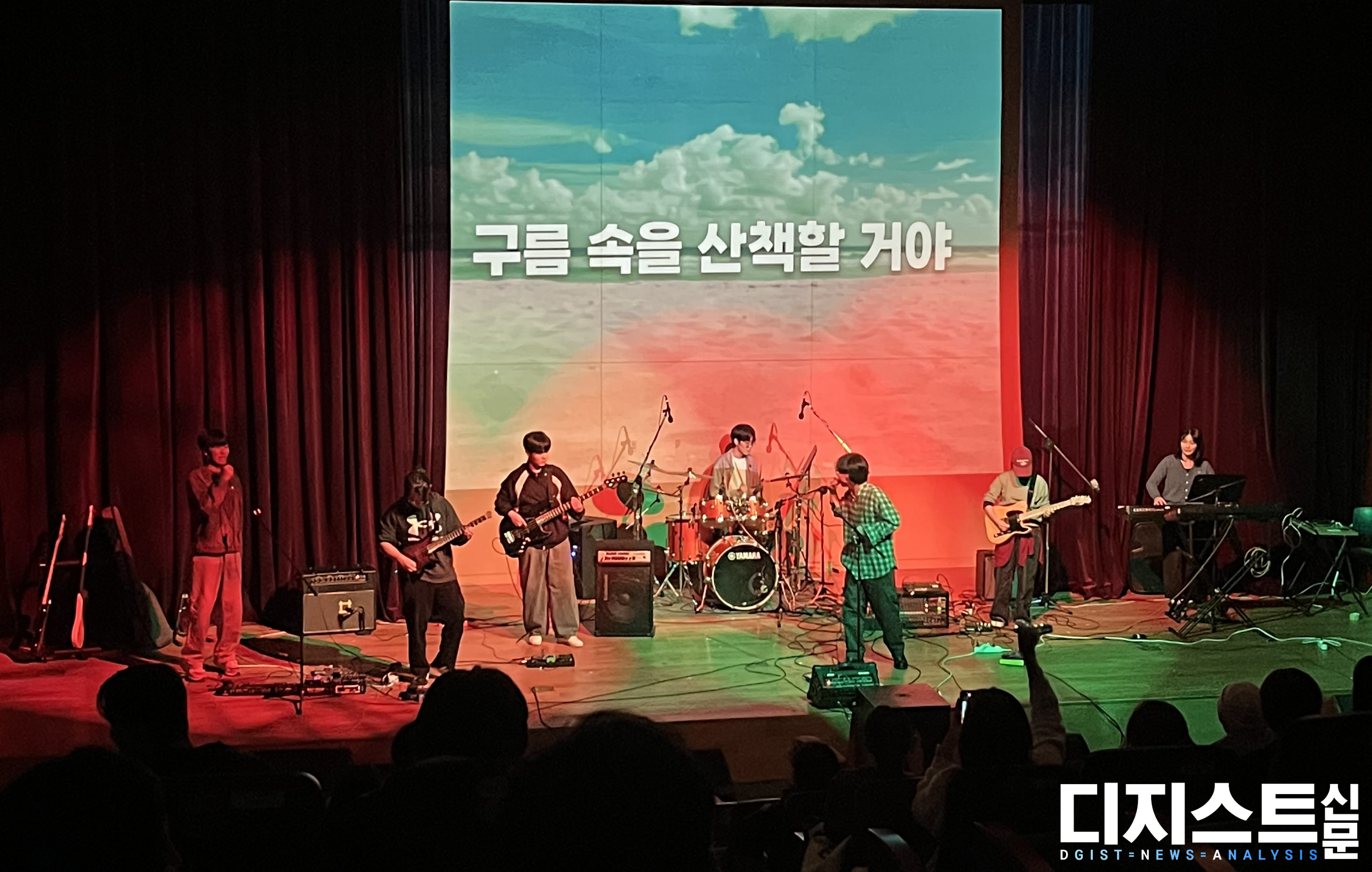 지난 12일, DGIST 밴드 동아리 RGB는 컨실리언스홀(E7) L29에서 ‘2025 현풍 락페스티벌’을 진행했다. 1부와 2부로 나누어 진행된 이번 공연은 2시간이 넘는 러닝 타임 내내 다양한 장르의 락 음악을 선보이며 관객에게 큰 호응을 얻었다. 모든 정규 공연이 끝난 후 이어진 앵콜 공연에서는 관객 모두를 무대 앞으로 불러내며 ‘락페스티벌’다운 분위기를 자아냈다. 초겨울의 추위도 녹이는 DGIST 청춘들의 뜨거운 열정이 담긴 공연 현장을 공유한다.