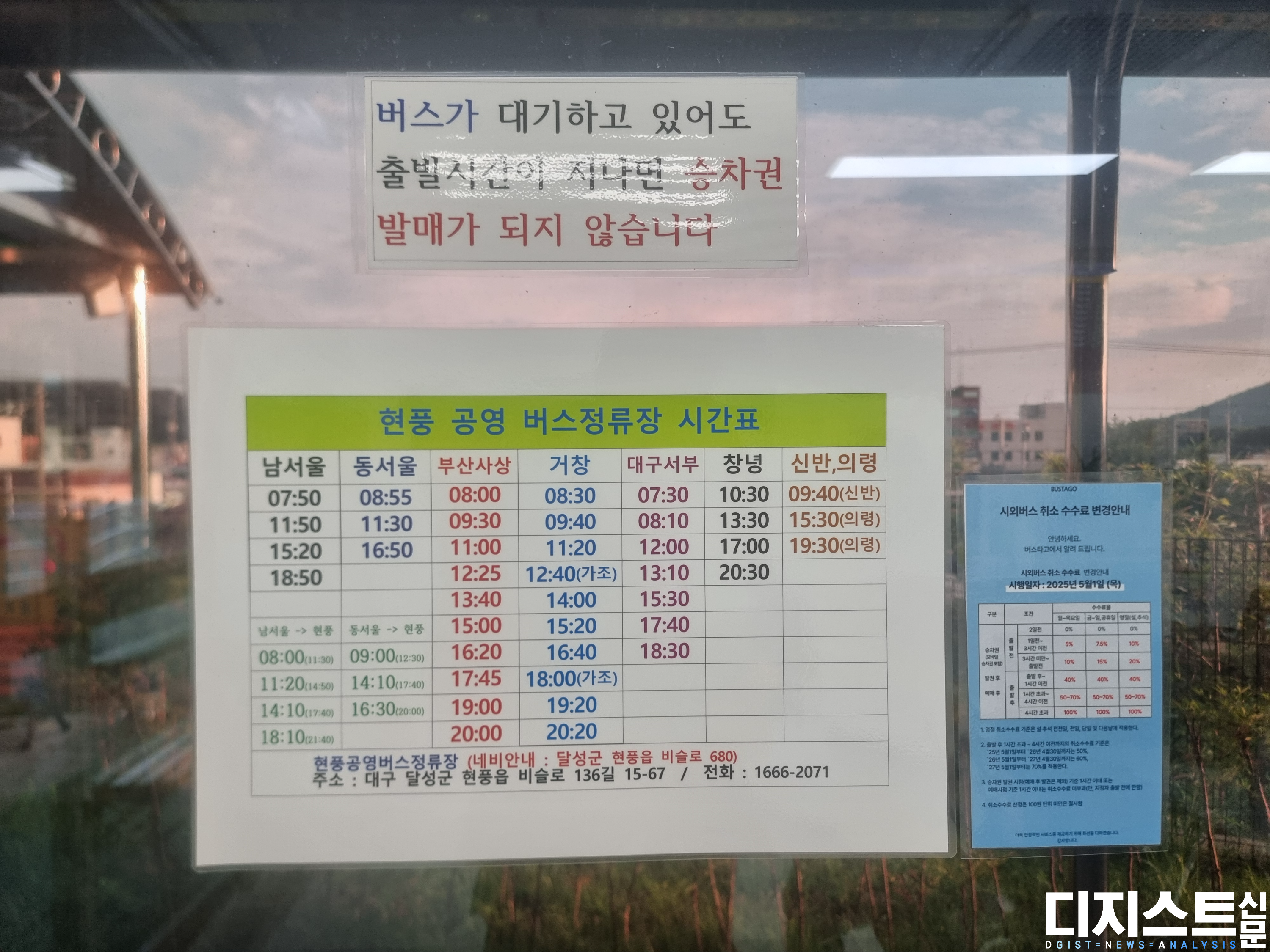 또한 현풍공영버스정류장을 이용할 때는 시내버스 기·종점인 구(舊) 현풍공영버스터미널과 혼동하지 않도록 유의해야 한다.