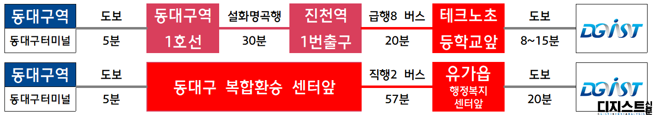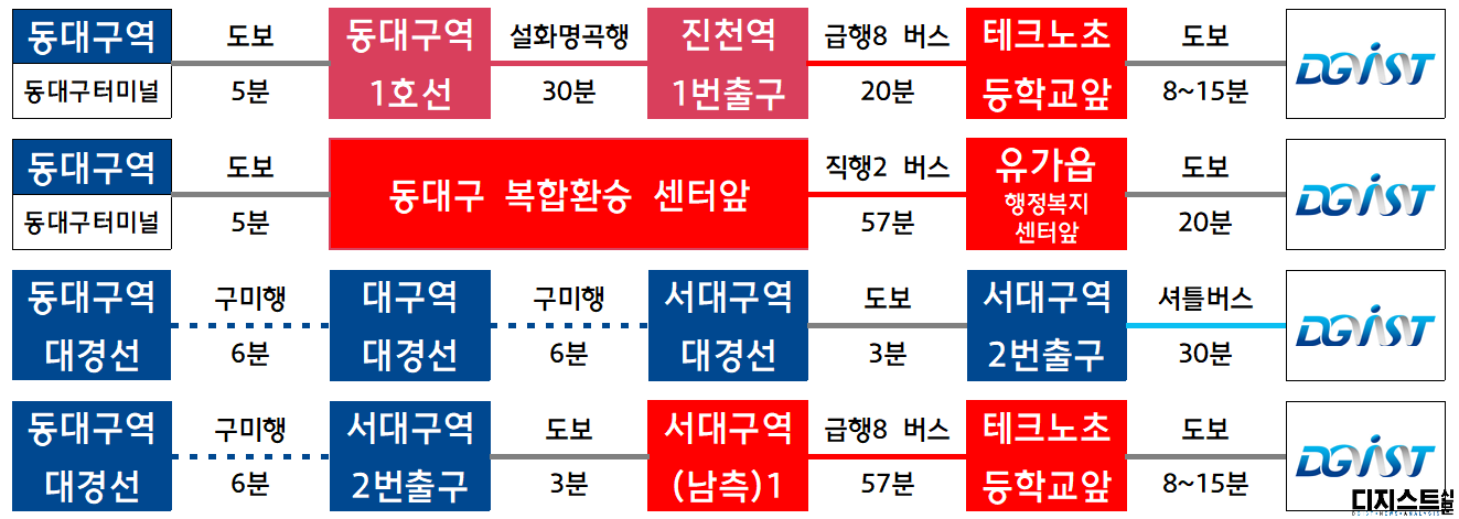 동대구역에서 DGIST로 오는 방법은 앞서 소개한 동대구터미널 이용 방법과 동일하다.