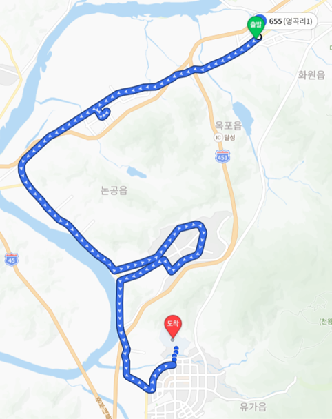 다만 논공읍을 경유해 이동 시간이 매우 길어 권장하지 않는다.