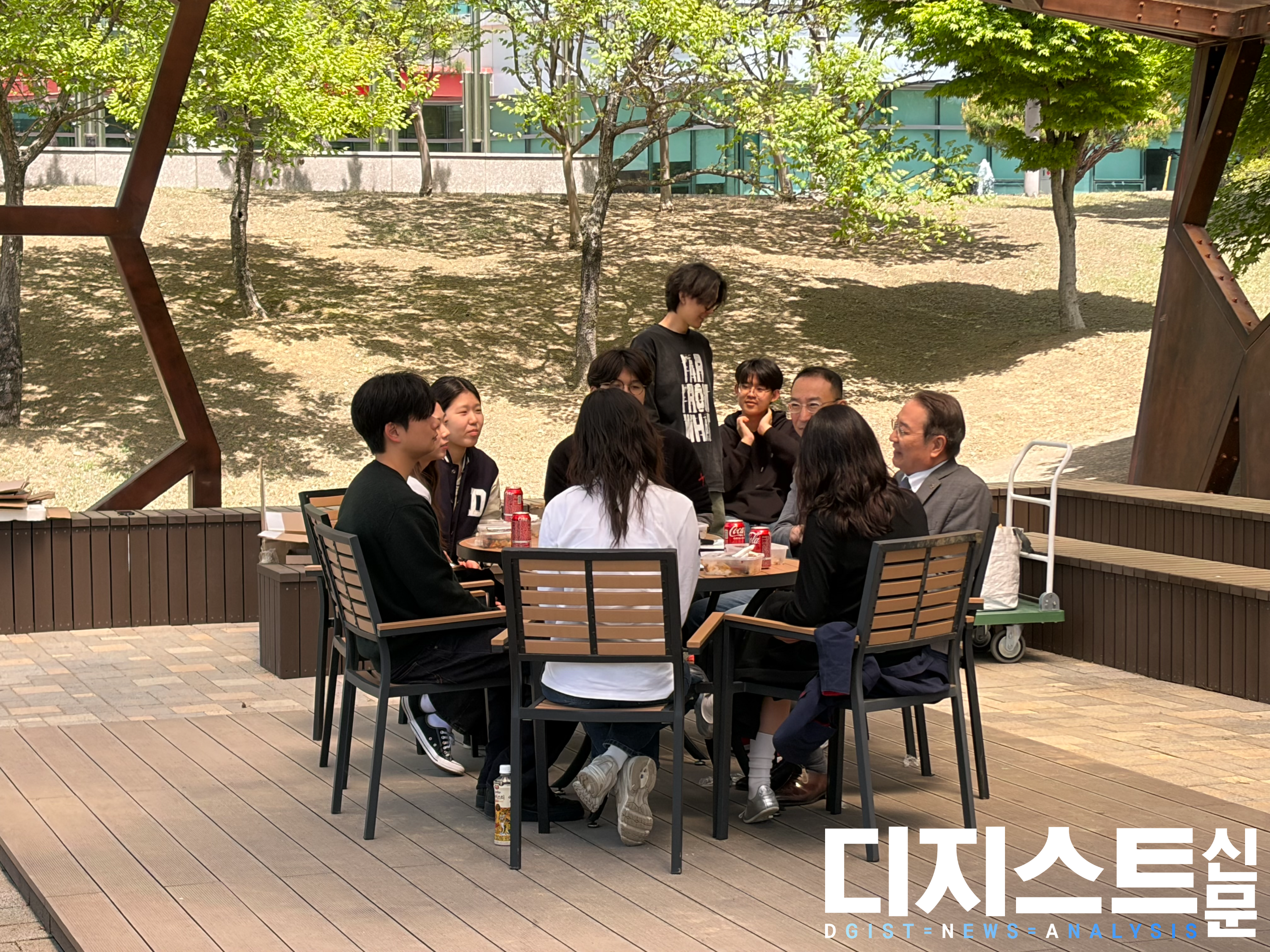 또한, 서초우 총학생회장(`24, 이하 서 회장)과 이환희 부총학생회장(`24)을 비롯한 총학 국장급 관 계자는 이날 이 총장을 만나 행사장에서 오찬을 가졌다. ‘디지스트신문 DNA’를 만난 서 회장은 “이 자리에서 학생 창업 관련 건의 사항과 시험 기간 중 학술정보관 운영 시간 확대 등에 대해 이 총장과 논의했다”라고 전했다.