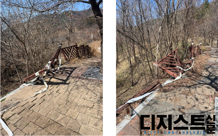 또한 비슬창의융합관과 야외음악당 사이의 길을 따라 올라가면 DGIST를 한눈에 볼 수 있는 산책로를 찾을 수 있다. 이 길의 난간도 파손되어 출입을 막는 띠가 감겨 있다. 이처럼 아름다운 풍경 뒤에 가려진 시설물의 노후화는 캠퍼스의 전반적인 미관을 저해하고 구성원의 안전을 위협하고 있다.
