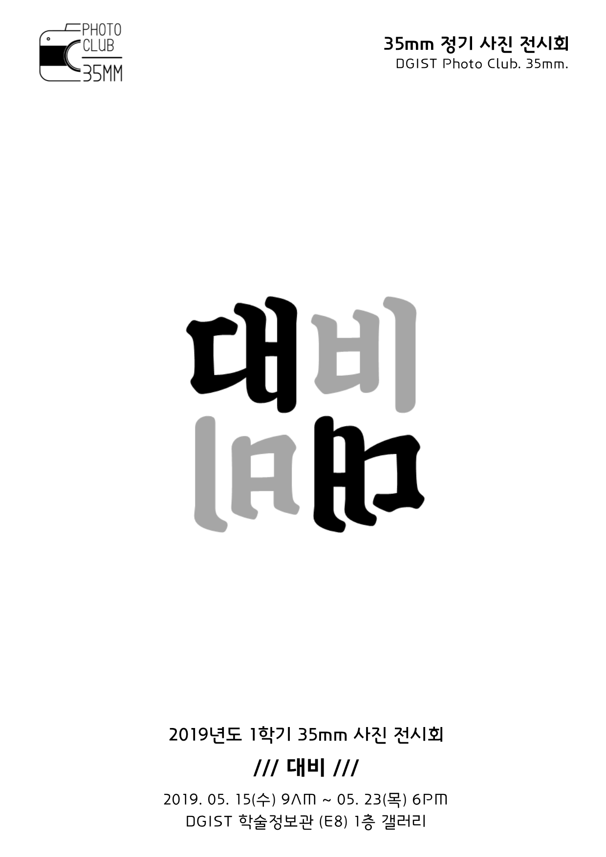 교내 사진동아리 35mm가 지난 5월 15일부터 다음 주 5월 23일 오후 6시까지 사진전 ‘대비’를 선보인다. 학술정보관 1층 DGIST 갤러리에서 열리는 이번 사진전은 작년 2학기에 열린 제1회 사진전 ‘여행을 담다: 여담’을 이어 2회차를 맞이하는 행사다.