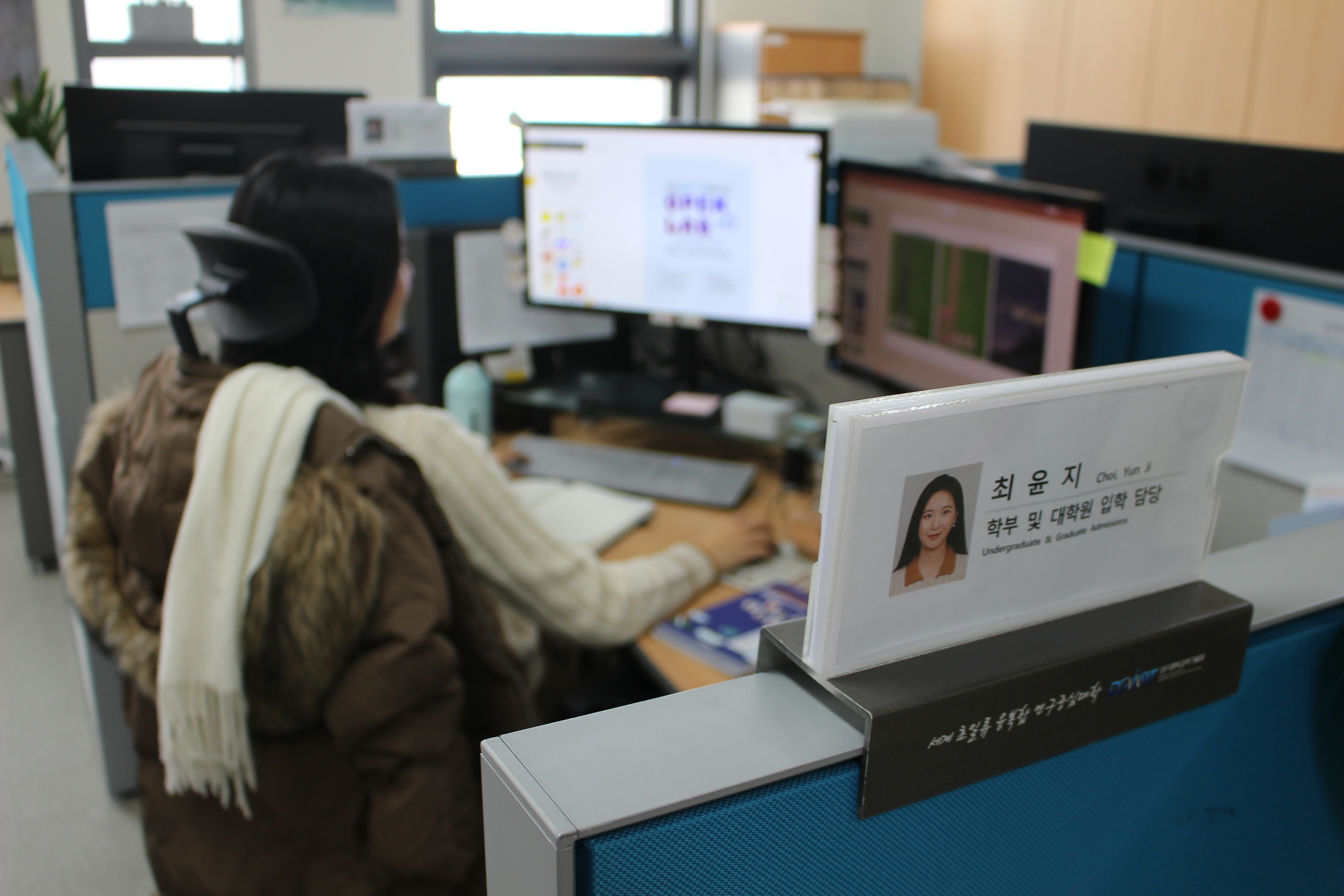 - 학생들이 불편을 느끼지 않도록 행정원들이 항상 도와주고 싶어 한다고 느낄 수 있었으면 좋겠다. 모든 방면에서 도움을 줄 수 있도록 내 담당이 아닌 업무도 이해하고 수행할 수 있는 만능행정원이 되고 싶다.