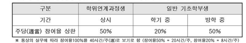 위 과정 및 서식이 대외적 효력이나 구속력을 가지지는 않지만, 학사 일정과 연구 과제 참여를 균형을 잘 잡아 소화할 수 있도록 학부 및 대학원의 많은 교원이 함께 고민한 결과이니 해당 서식을 마련하여 제출한 이후에 연구과제에 참여해줄 것을 기초학부는 당부하였다.