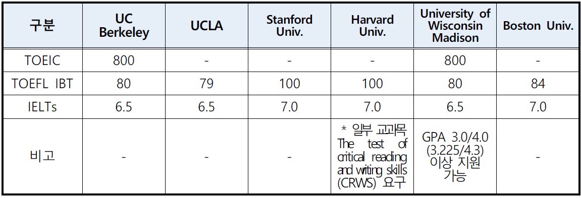 또한 위스콘신 대학에 지원하기 위해서는 GPA 3.225/4.3 이상이 되어야 지원할 수 있으며, 위스콘신 대학에 지원할 학생은 추후 학업 계획서 등의 지원서를 제출할 때 성적 증명서를 함께 제출하여야 한다.
