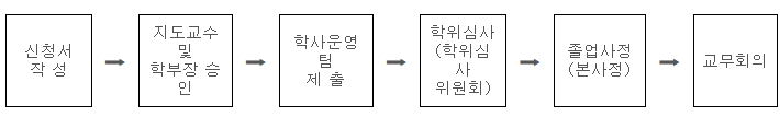 조기졸업 절차는 ▲신청서 작성 ▲지도교수 및 학부장 승인 ▲학사운영팀 제출 ▲학위 심사 ▲졸업 사정 ▲교무회의의 순서로 진행된다.