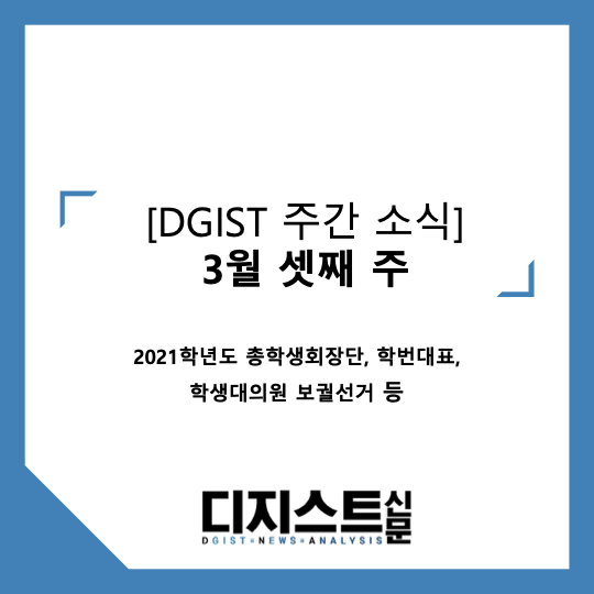 | [DGIST 주간 소식] 2021년 3월 둘째 주: 수강 포기, 대학원 원서접수, 대학원생 권리장전 서포터즈 (0) | 2021.03.12 |