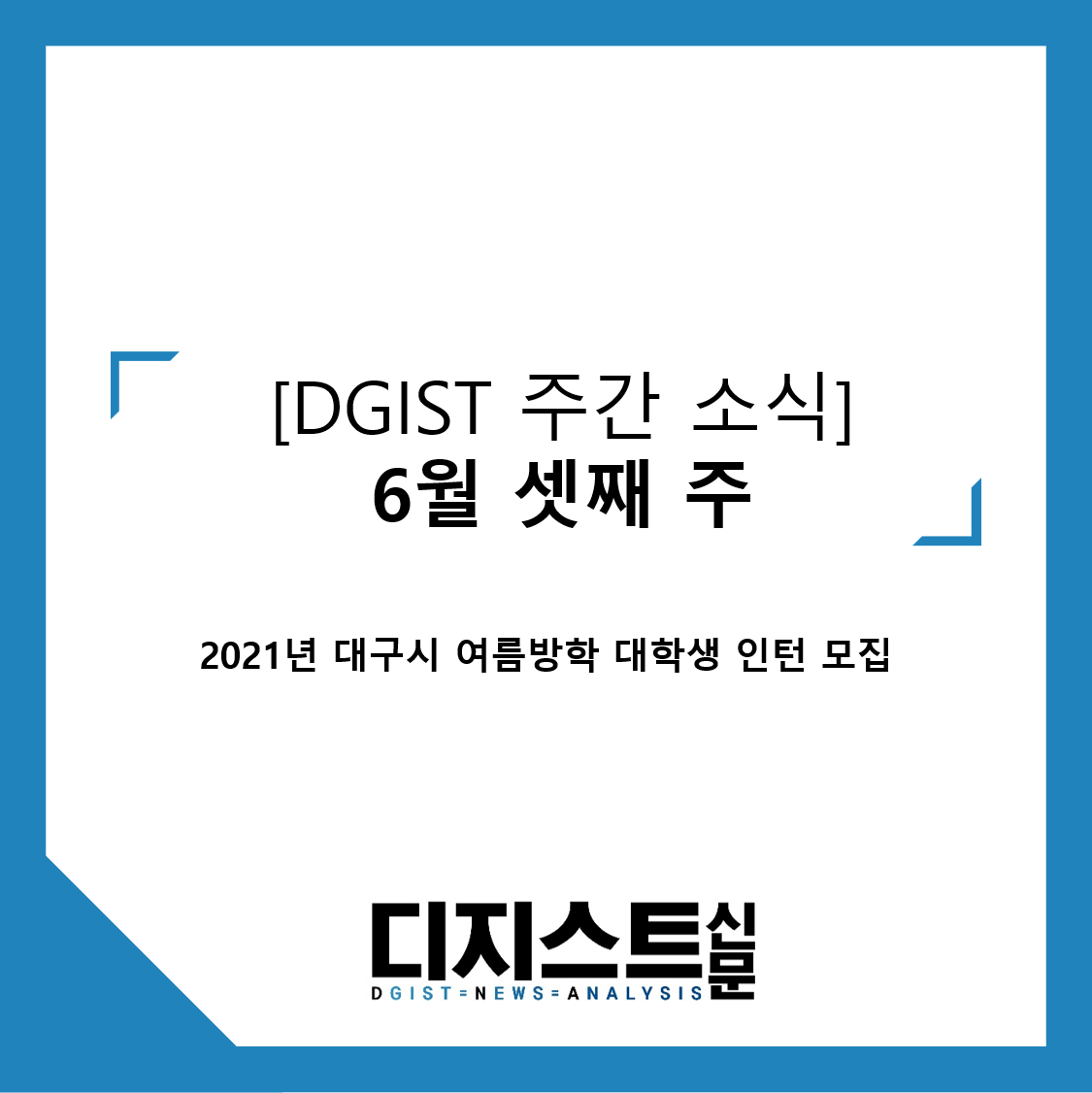 [DGIST 주간 소식] 2021년 6월 셋째 주: 2021년 대구시 여름방학 대학생인턴 모집