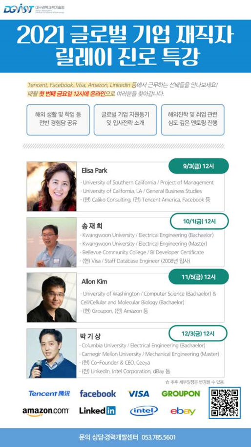 [상담∙경력개발센터] 2021년 글로벌 기업 재직자 릴레이 진로특강 (9/3, 10/1, 11/5, 12/3 강연)