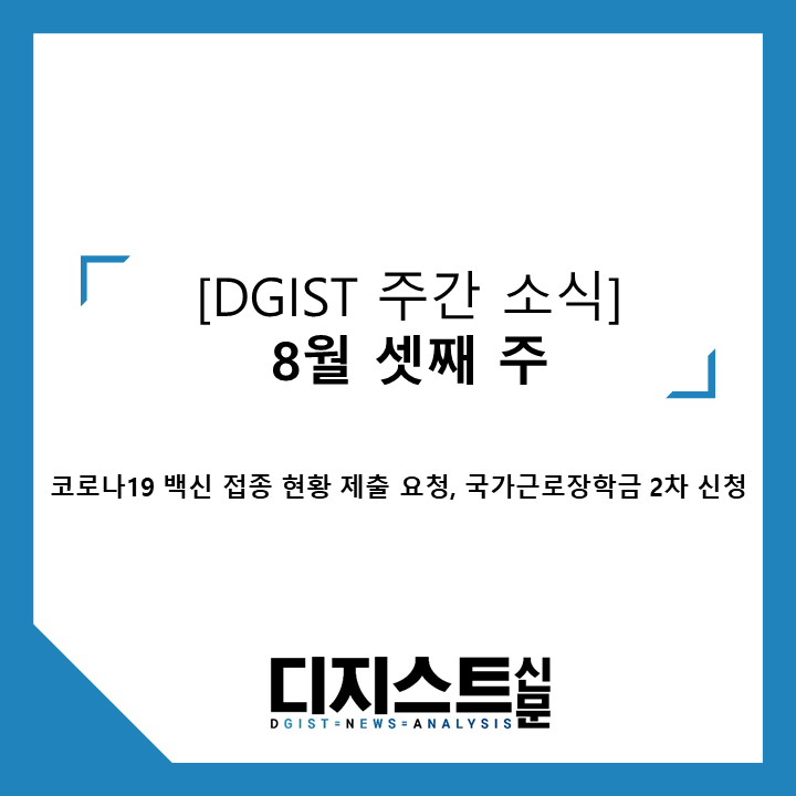 | [DGIST 주간 소식] 2021년 8월 넷째 주: 백신공결제, 코로나 단체검사 (0) | 2021.08.30 |