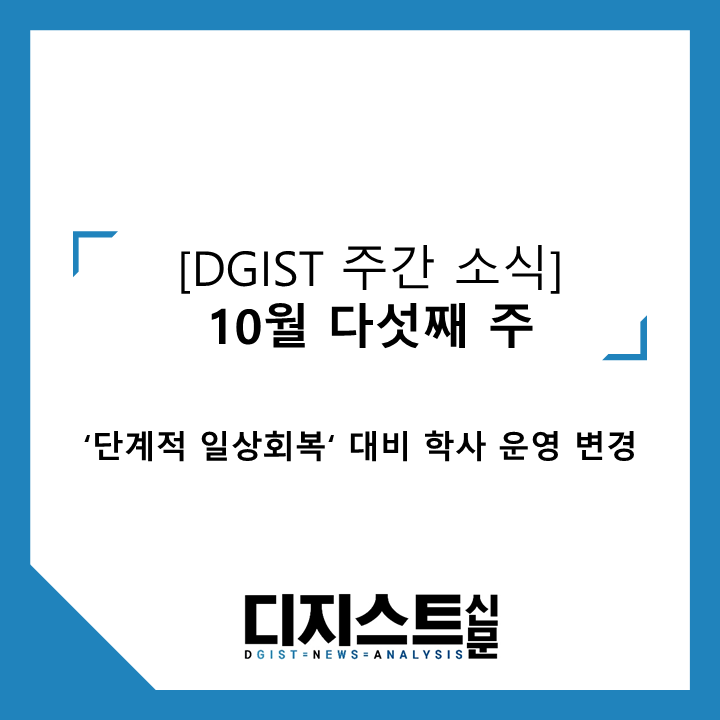 | [DGIST 주간 소식] 2021년 11월 첫째 주: 기초학부 강의실 변경, 코로나19 검사 (0) | 2021.11.06 |