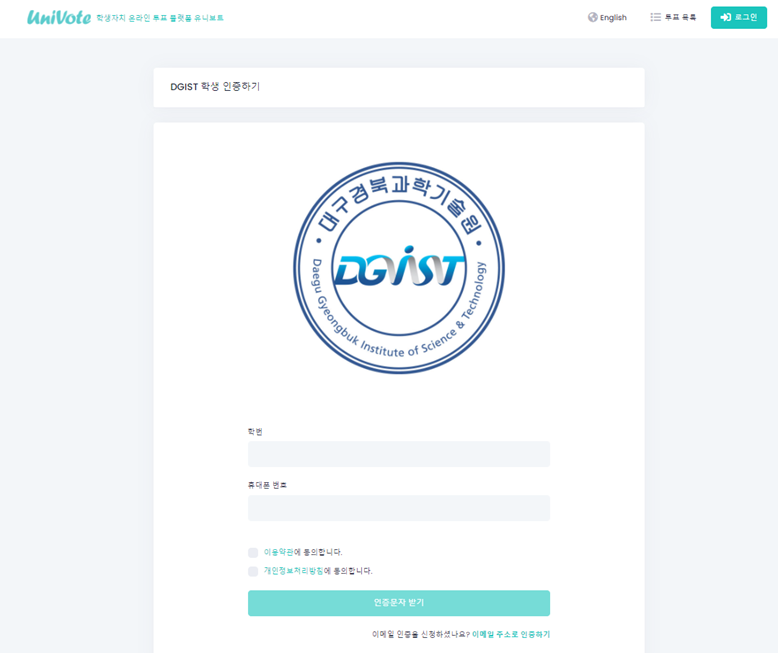 투표 사이트는 https://dgist.univote.co.kr이다. 이 주소는 현재 메일로 안내가 되었으며, 선거 당일에도 문자로 투표 사이트 링크가 발송될 것이 예상된다.