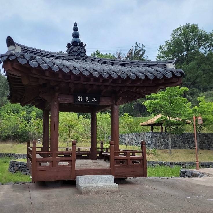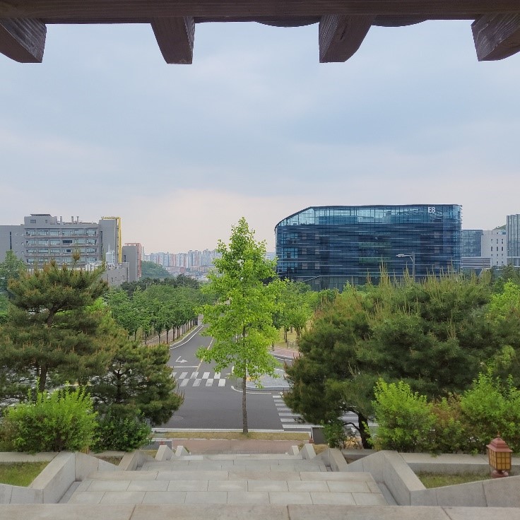 대견각은 문을 열고 들어왔을 때 가장 먼저 마주하는 정자로, 이곳에서 DGIST의 전경을 조망할 수 있다.