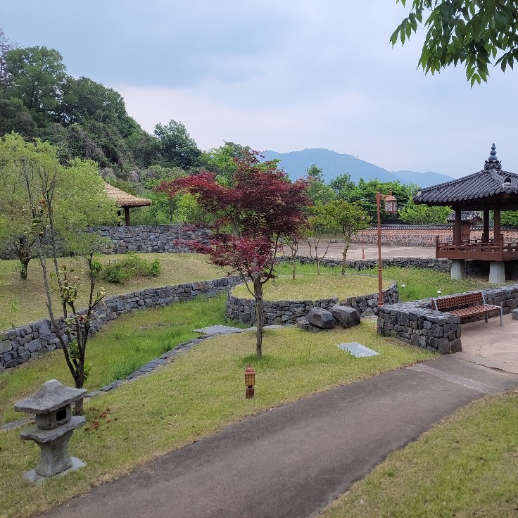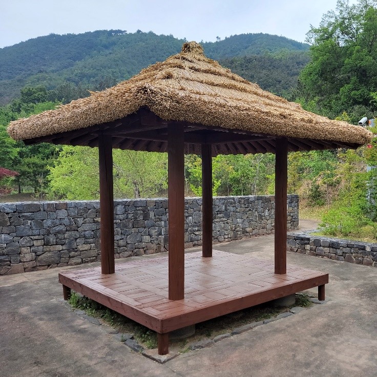 낮은 돌담 사이에 위치한 원두막에서는 DGIST 뒷산인 금산의 풍경을 감상할 수 있다.