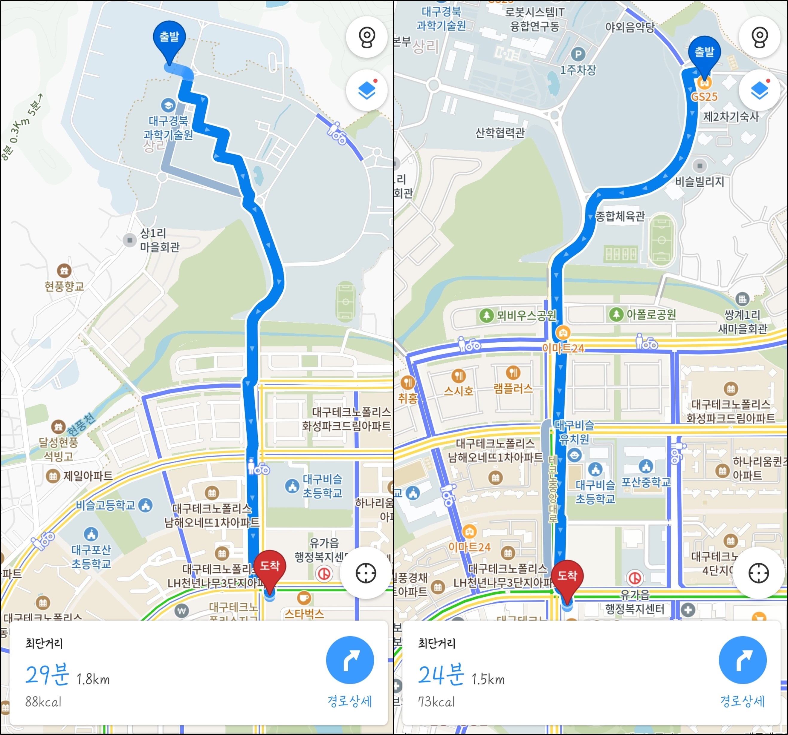 테크노폴리스는 편의시설을 모은 장소만이 아니다. 대구 도심과 DGIST를 연결하는 곳이다. 테크노폴리스에서 해결할 수 없는 일을 위해 대구 도심으로 나가려면 ▲테크노폴리스 ▲중흥S클래스에서 급행8 버스를 이용해야 한다. 두 정거장 모두 1차 기숙사부터 약 1.6km 떨어져 있어 25분은 걸어야 한다. 예컨대 테크노폴리스에는 없는 신경과를 방문하려면 월배역까지 나가야 하며 ▲테크노폴리스까지 도보로 25분 ▲급행8로 27분을 이동에 소비해야 한다.