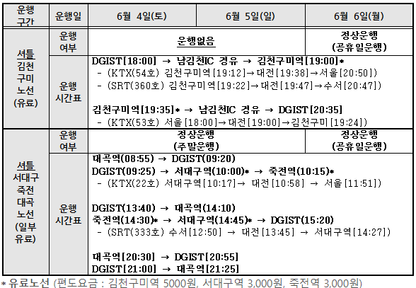 해당 연휴 기간 동안 통근버스는 운행하지 않는다.