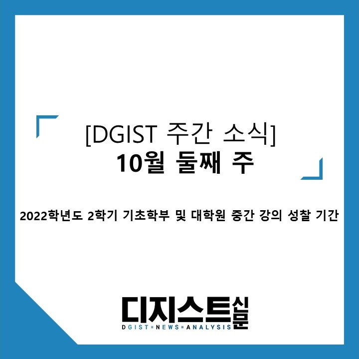 | [DGIST 주간 소식] 2022년 10월 다섯째 주: 2022년 DGIST 학생축제(제7회 달빛제) 개최 (0) | 2022.10.30 |
