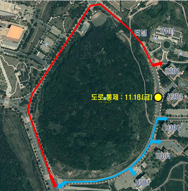 1차 학생기숙사 맞은편 교원 사택 신축공사 관련 도시가스 인입공사로 인하여, 18일(금) 7시부터 17시까지 위 약도와 같이 도로 통제를 진행할 예정이다. 시설운영팀은 원활한 공사 진행과 안전 확보를 위해 구성원들의 양해와 협조를 부탁하며 현장 도로 요철을 주의해주기를 바란다고 전했다.