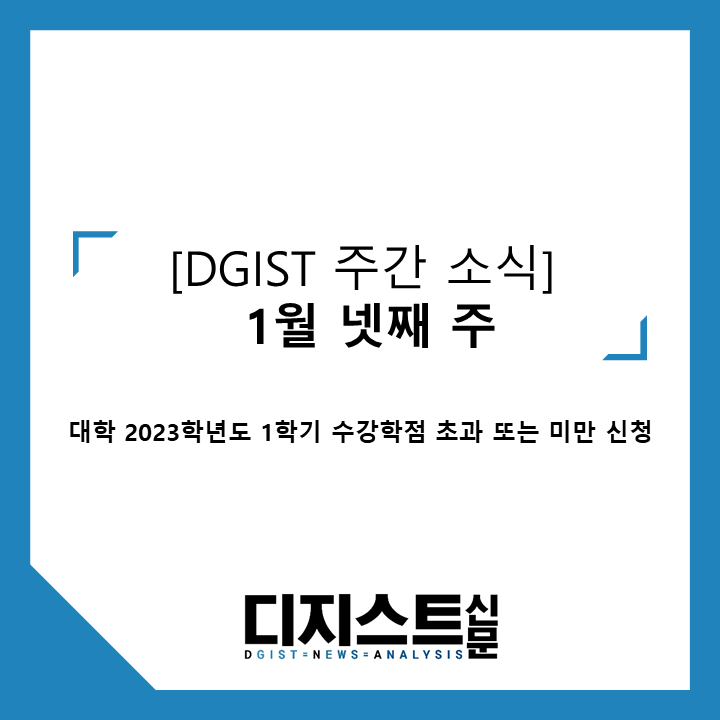 | [DGIST 주간 소식] 2023년 1월 셋째 주: 대학 수강신청 및 학점인정시험 신청 안내 (0) | 2023.01.23 |