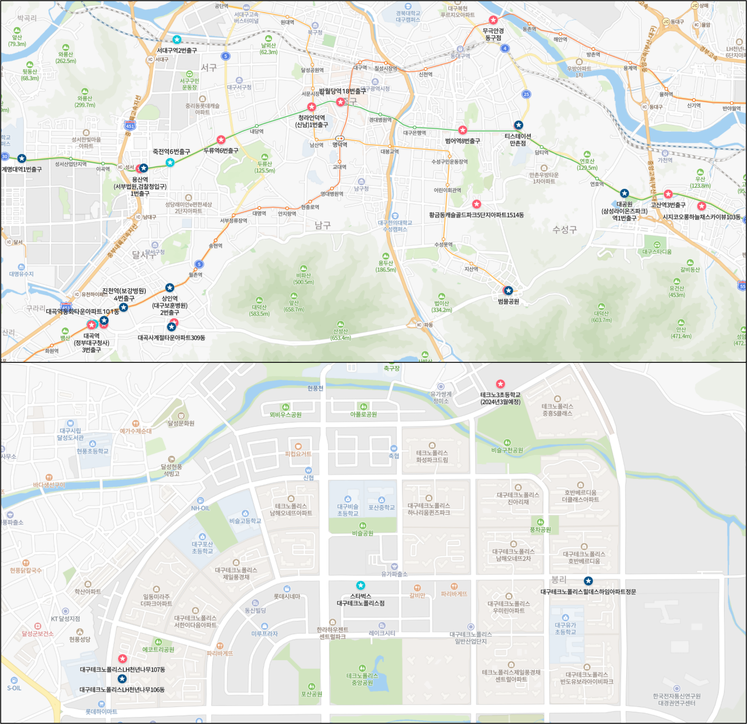 오는 3월부터 기존 ▲일요일 김천구미역 순환버스 ▲상인역2 퇴근버스 ▲용산역2 퇴근버스가 ▲일요일 서대구역 순환버스 ▲상인용산역2 퇴근버스로 개편된다. 위의 지도 및 노선 소개는 개편안을 반영하였다.
