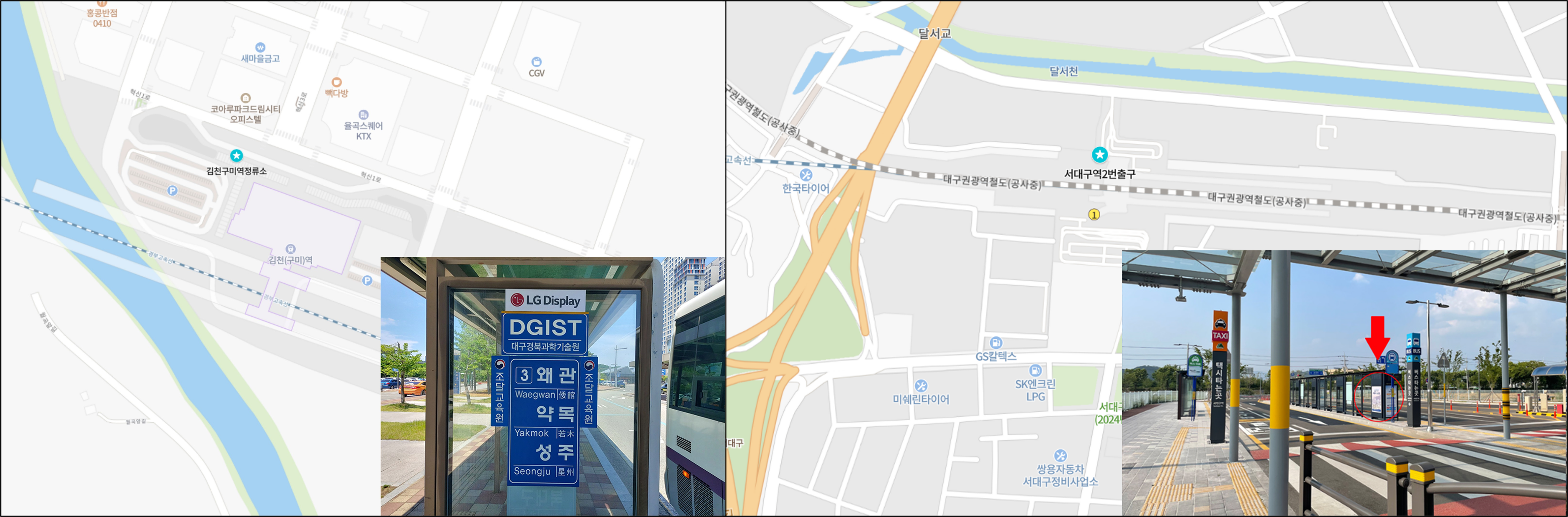 정확한 탑승 위치 및 시각은 DGIST 셔틀버스 안내 페이지와 ‘에스원 UVIS 셔틀버스’ 앱에서 확인할 수 있다.
