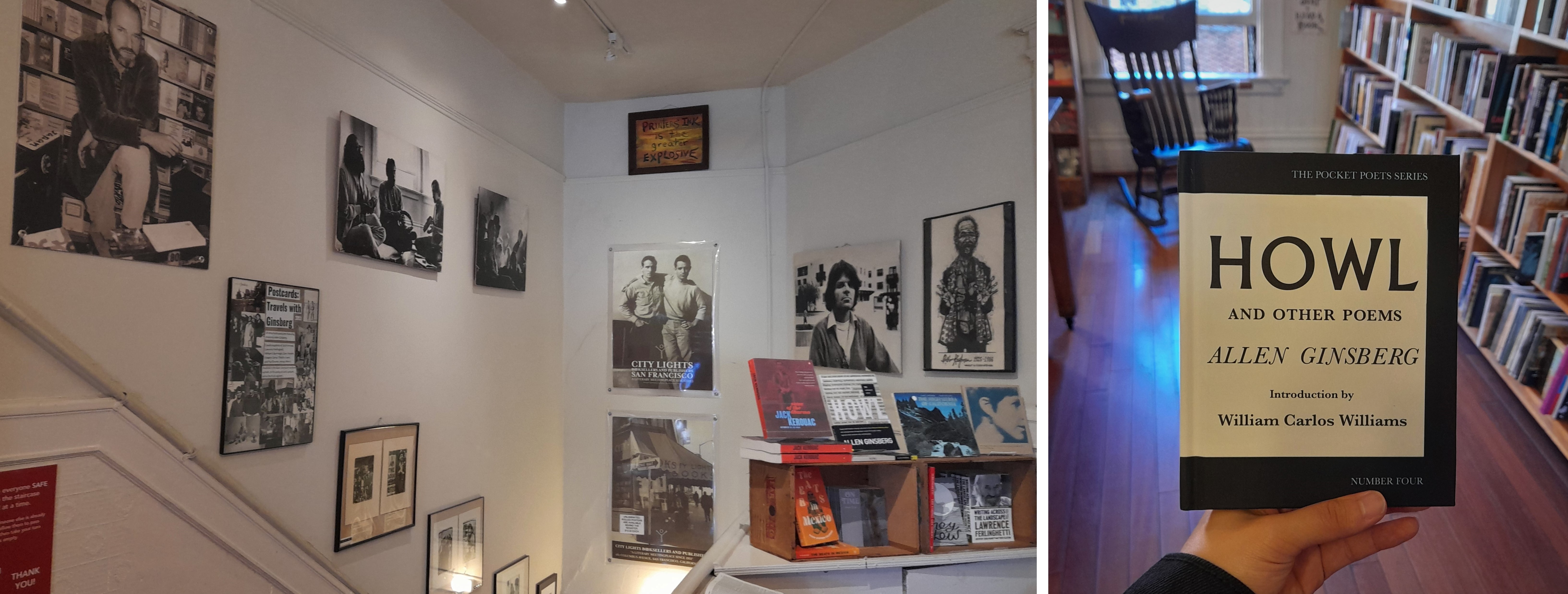 City Lights Booksellers & Publishers는 1953년 시인 로런스 펄링게티와 피터 마틴에 의해 설립된 서점 겸 출판사로, 수많은 비트 세대 인물들의 안식처였다. 1956년 비트 문학의 대표작인 앨런 긴즈버그의 <Howl>을 최초로 출판한 후 음란서적이라는 이유로 펄링게티가 구속되자, 당대의 유명한 작가와 지식인들이 그를 변호하여 자유로운 출판의 권리를 인정받는 등 비트 세대의 저항정신을 함께하기도 했다. 서점은 지하 1층부터 2층까지 총 3층으로 이루어져 있으며 그중 2층은 Poetry room이라는 이름으로 운영된다. 서점 내부에는 이곳에서 활동했던 작가들의 사진과 글이 남아있으며, ‘WARNING: Reading BOOKS May Change Your Life’, ‘BOOKS NOT BOMBS’ 등 재미있는 문구들도 만나볼 수 있다.