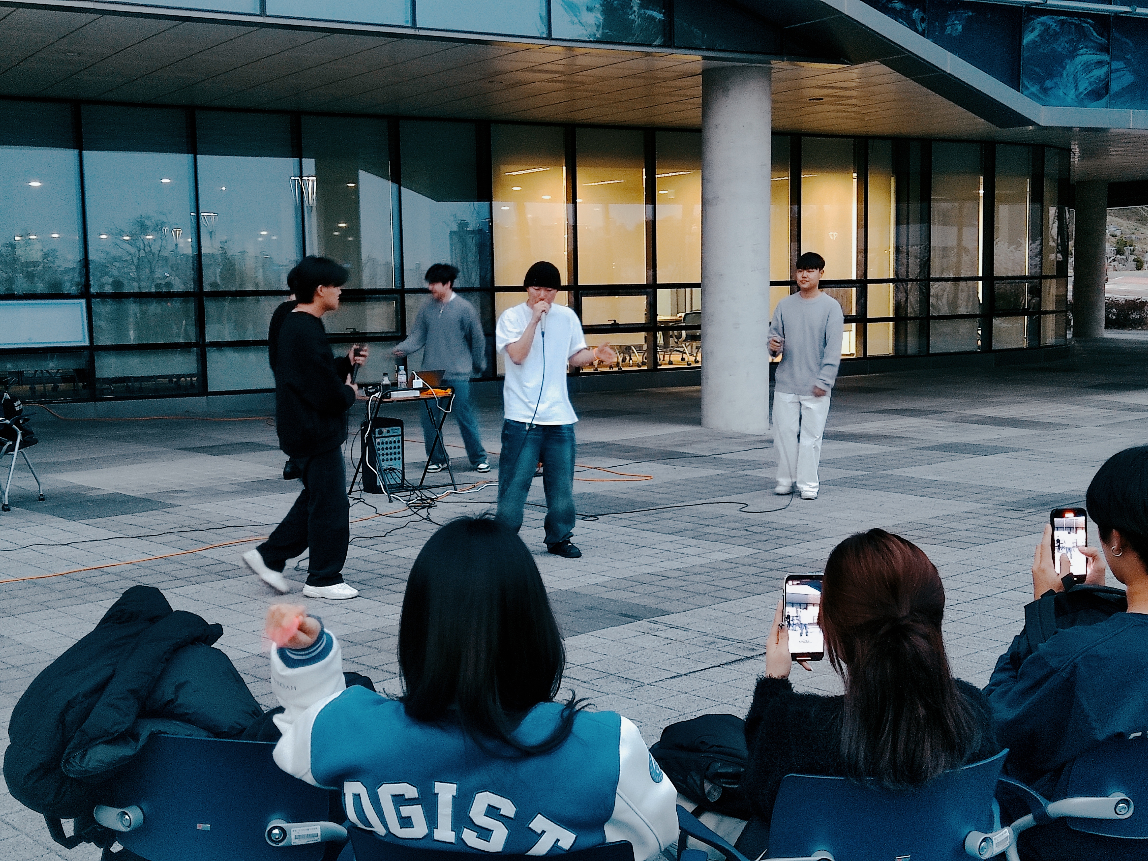 오늘 (30일) 힙합 동아리 아마루가 학술정보관 올해 첫 버스킹을 성공적으로 마쳤다. 아마루는 베이식의 “08베이식”을 시작으로 총 14곡을 1시간 가량 공연했다.