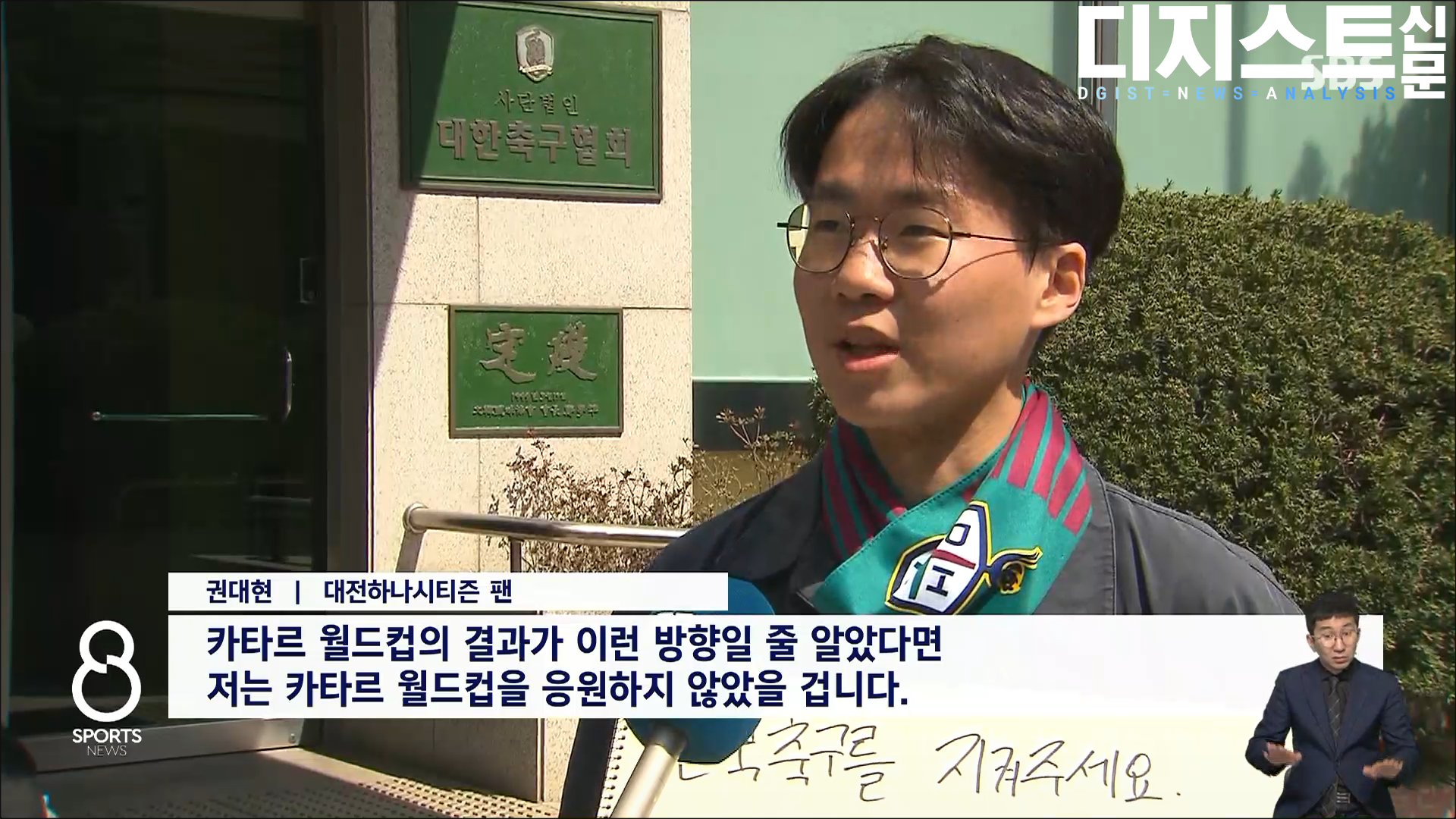 카메라 앞에서 내 이야기를 했다. 카타르 월드컵의 선전을 이번 사면의 이유로 설명한 협회를 이해하지 못하겠다는 말과 함께, 이런 상황이 올 줄 알았다면 월드컵을 응원하지 않았을 것이라는 내 후회를 전하며 소심하게 그들을 비꼬았다. 세상 물정 모르는 대학생이 할 수 있는 일이라고는 피켓을 들고 거리로 나오는 것뿐이기 때문에 이렇게 서 있다는 내 속 이야기였다.