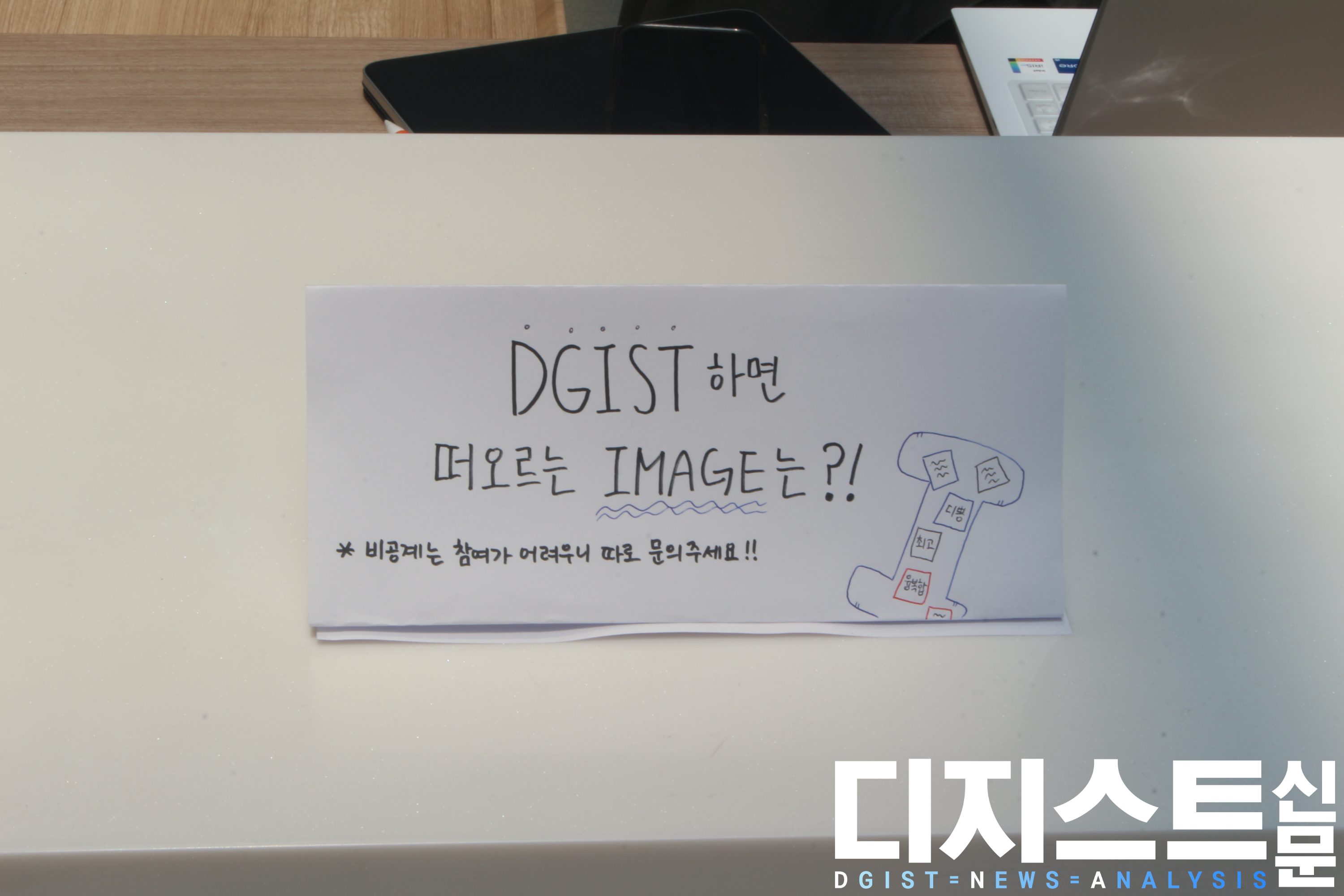 DGIST 학생 홍보대사 D.light가 지난 8일부터 오는 14일까지 E7 해동창의마루 앞 인포데스크에서 디지스트 글자 꾸미기 행사(이하 디.꾸)를 진행한다. 하루마다 D.light가 준비한 서로 다른 질문의 답을 포스트잇에 적어 DGIST 각각의 글자를 꾸미고, 이를 해동창의마루에 전시하는 형태이다. 각 질문의 주제는 ▲디지스트에서 가장 dlight했던 순간은? (8일) ▲디지스트에서 이루고 싶은 goal이 있다면? (9일) ▲디지스트 하면 떠오르는 image? (10일) ▲디지스트만의 special한 장점이 있다면? (11일) ▲디지스트에서 꼭 try 하고 싶은 건? (12일, 14일)이다.