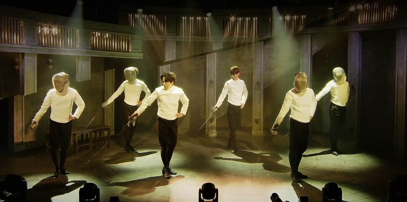 <비더슈탄트>의 무대에는 ‘보이지 않는 벽’이 효과적으로 활용된다. 「비더슈탄트」 넘버에서는 무대 왼편에서 클레어가 “독일 위하여”를, 오른편에서 아벨, 재스퍼, 하겐이 “비더슈탄트”를 외치고 매그너스는 그 경계에 서서 양쪽의 가사를 번갈아 부르며 갈등하는 모습이 비친다. 한편 「라이너의 편지」에서는 라이너가 프레드릭에게 남긴 편지를 읽는 세 소년의 모습과 그들이 보낸 편지를 읽으며 당황하는 프레드릭의 모습이 한 무대 위에 표현된다. 이러한 표현 방식의 백미는 「라이너의 죽음」과 「우리의 칼 Reprise」에서 회상 속 아벨을 바라보는 매그너스의 모습이다. 매그너스는 아벨을 바라보며 손을 뻗지만 아벨은 그를 돌아보지 않는다. 아벨은 이미 그 자리에 없기 때문이다. 이러한 모습은 돌이킬 수 없는 두 사람의 이야기를 관객들에게 잔인하게 상기시킨다. 비록 같은 무대에 서 있지만 이제 그들은 서로 다른 시공간에 있다는 것을. 매그너스는 아벨을 두 번 다시 만날 수 없다는 사실을.