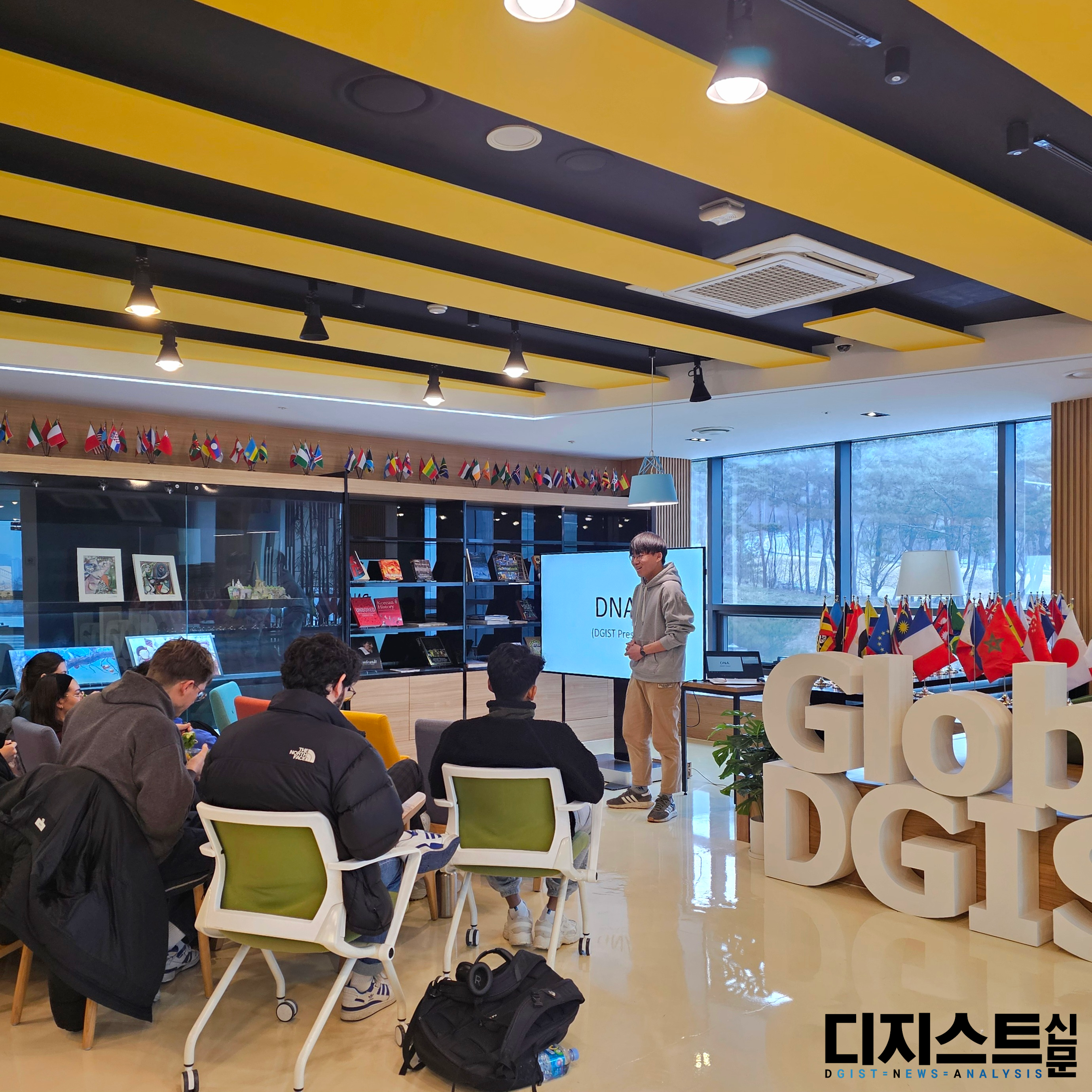 지난 2월 26일부터 29일까지 E7 글로벌 라운지에서 DGIST에 새로 입학한 국제학생들을 위한 오리엔테이션이 진행되었다. 특히 29일에는 학생자치단체 및 동아리 홍보가 이루어졌다. 이 자리에는 ▲DISA(국제학생회) ▲DNA(학보사) ▲DGRC(조정부) ▲DGroid(프로그래밍) ▲D-Orbital(물리) ▲Domino(디자인) ▲FC참꽃(축구)이 참여하여 국제학생들의 동아리 활동을 독려하였다.