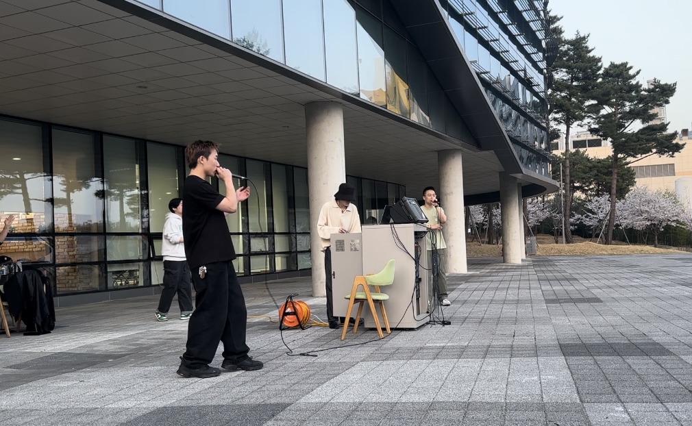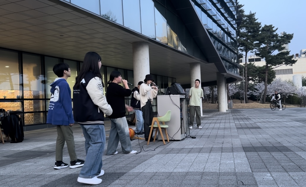 지난 1일, 힙합 동아리 아마루가 E8 학술정보관 앞에서 2024년의 첫 버스킹을 진행했다. 본 공연에서 아마루는 ▲ Leellamarz interlude ▲뿌리 ▲RUN 등 총 13곡을 1시간가량 공연했다.