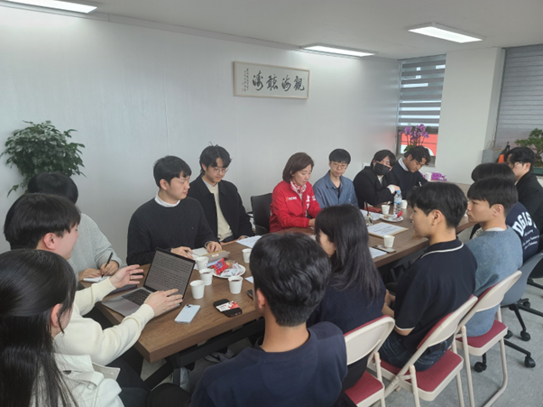 지난 4일, DGIST 총학생회를 포함한 총학생회 공동 포럼이 4·10 총선 나경원 서울 동작을 국민의힘 후보(이하 나 후보)와의 간담회를 개최했다. 9개 대학(▲고려대 ▲서강대 ▲서울대 ▲연세대 ▲DGIST ▲GIST ▲KAIST ▲POSTECH ▲UNIST)으로 구성된 총학생회 공동 포럼에서 일정상의 이유로 불참한 ▲서울대 ▲POSTECH를 제외한 7개 대학의 총학생회 간부와 학내언론기구 학생 언론인 20여 명이 본 행사에 참여했다. 이들은 서울시 동작구에 위치한 나 후보의 선거캠프에서 30분가량 이야기 나누며 청년 정책에 대한 생각을 공유했다. DGIST에서는 ▲김민성 총학생회장(`22) (이하 김민성 회장) ▲권대현 디지스트신문 DNA 부편집장(`23) ▲배송윤 디지스트신문 DNA 기자(`24)가 참석했다.