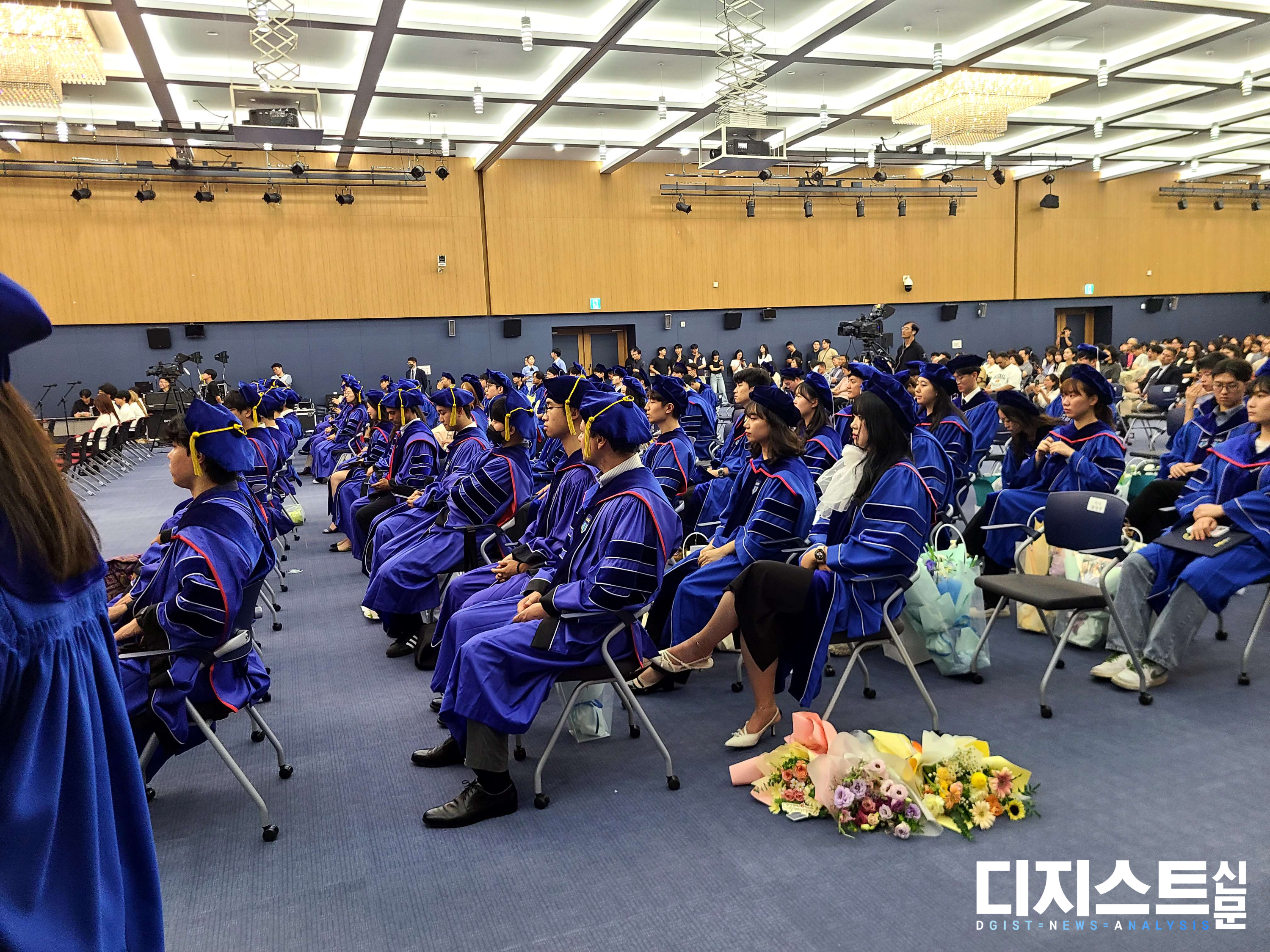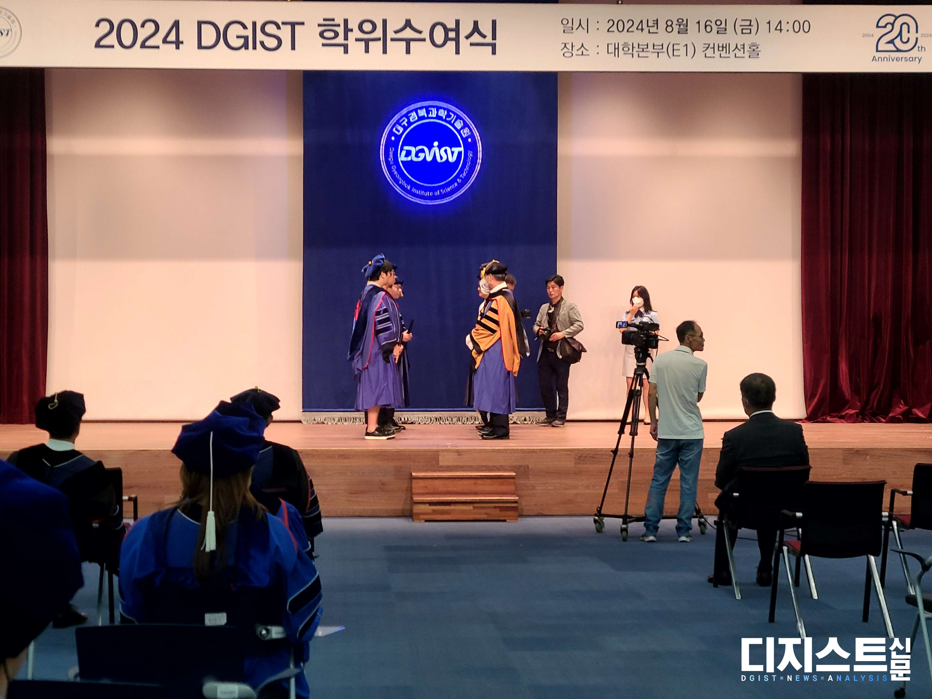 지난 16일, 대학본부 컨벤션홀에서 2024년도 후기 학위 수여식이 진행되었다. ▲박사 30명 ▲석사 53명 ▲학사 51명에게 학위가 수여되었다. 관현악 동아리 D.Crescendo의 연주와, 디지스트 응원단 D.ONE의 공연이 진행되었으며, LG화학 신학철 부회장이 특별연사로 자리하였다. 이날 이건우 총장은 졸업식사에서 학생들에게 조급해하지 말고 협력할 줄 알며 감사할 줄 아는 사람이 되길 바란다고 전했다.