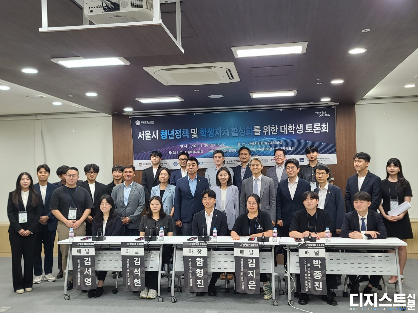 지난 26일, 서울시의회 제2대회의실에서 ‘서울시 청년 정책 및 학생 자치 활성화를 위한 대학생 토론회’가 진행되었다. 서울시의회가 주최하고 한국대학총학생회 공동포럼(이하 공동포럼)과 서울시의회 더불어민주당이 주관한 본 행사에는 최호정 서울시의회 의장과 박강산 서울시의원을 비롯한 서울시의회 인원이 함께했으며, 김민성 DGIST 학부 총학생회장(이하 김 회장)과 함형진 연세대학교 총학생회장을 비롯한 9개 대학(▲경희대 ▲고려대 ▲서강대 ▲서울대 ▲연세대 ▲DGIST ▲GIST ▲KAIST ▲UNIST)의 전현직 총학생회 집행부 인원이 발언하였다.