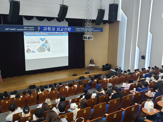 지난 31일, 박진 전 외교부 장관(이하 박 전 장관)이 DGIST E7 L29에서 제39회 리더십 강좌를 진행하였다. 박 전 장관은 ‘과학 외교’의 중요성을 강조하며, 약 1시간 40분간 ‘과학과 외교전략’을 주제로 강연하였다.