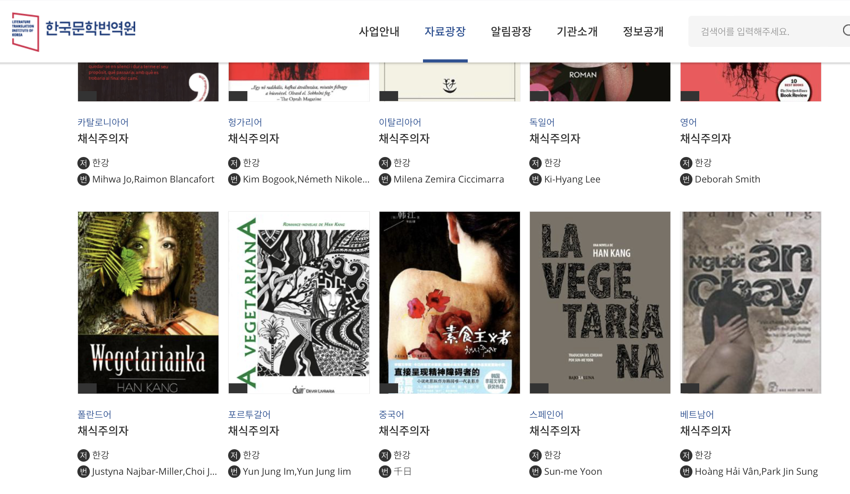 처음 한강의 작품이 단독 번역된 것은 2011년으로, 한국문학번역원 지원을 기반으로 번역가 김훈아가 일본어로 ‘채식주의자’를 번역했다. 같은 년도에 번역가 황하이번이 베트남어로 해당 작품을 번역하였으며, 이후 윤선미 번역가가 스페인어로 번역하며 서구권에 널리 알려지기 시작했다. 특히 이번 노벨상 수상으로 가장 많은 관심을 받은 번역가 데보라 스미스는 2015년 영문으로 해당 작품을 번역했다. 2009년부터 한국어를 독학으로 공부하여, 2010년부터 5년간 런던대학 SOAS 대학원에서 한국학을 공부한 그녀는 한강의 ‘채식주의자’를 읽고 첫 20페이지를 번역해 영국의 출판사 ‘그란타 포르토벨로’에 보냈다. 이후 한강과 적극적으로 의사소통하며 오랜 고민 끝에 번역을 완료했다. 영문 번역본 출간 이후 ‘채식주의자’가 1년 만에 부커상 후보에 오른 것을 보면, 한국 문학작품이 가진 언어의 장벽을 뛰어넘게 해준 번역가들의 노력과 열정에 감사를 보내지 않을 수 없다.