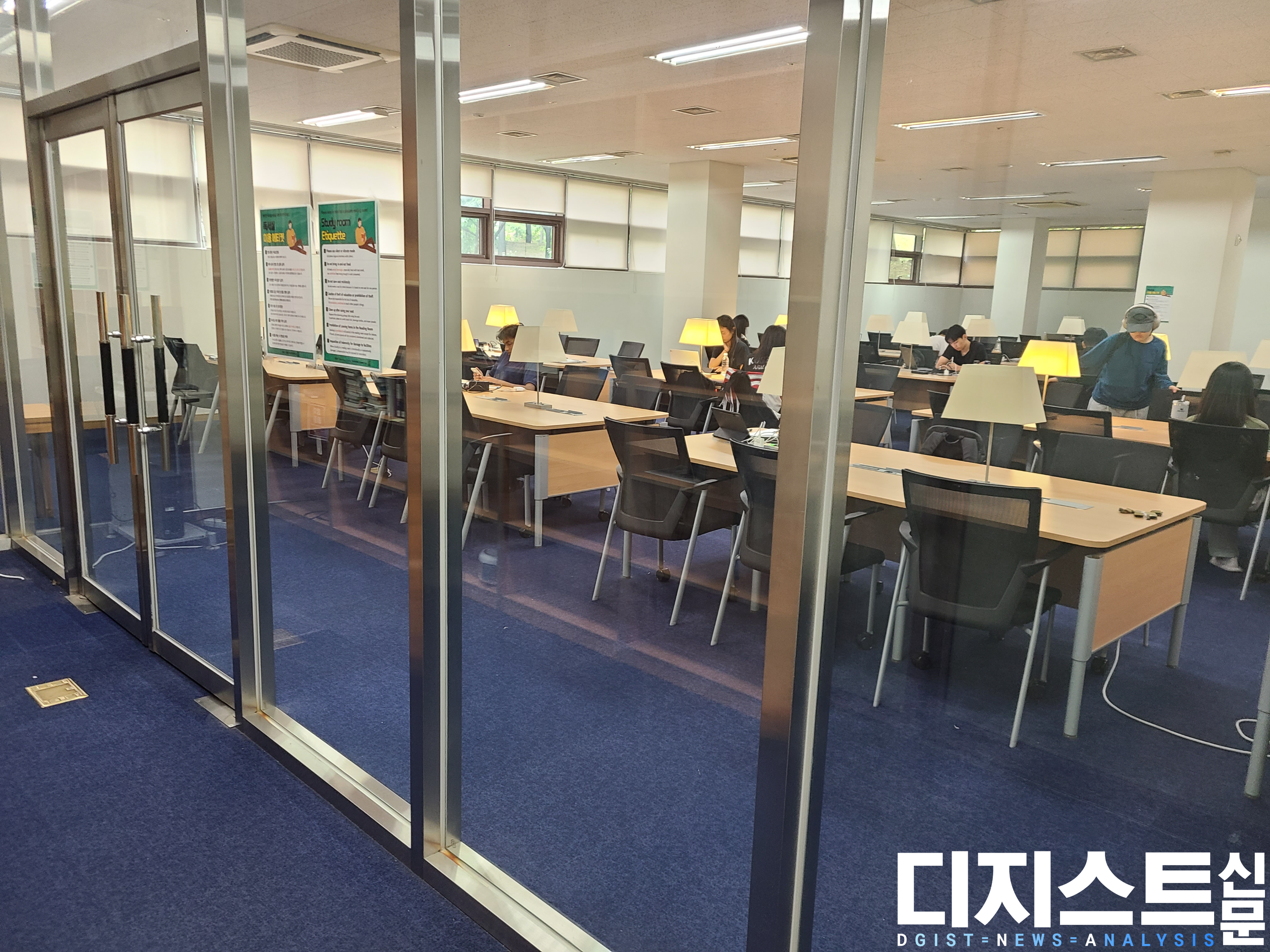 A: Yes, a 24-hour reading room is located next to the hallway of Building 202. To maintain a pleasant environment, please follow the etiquette guidelines. ▲Set phone to silent ▲ outside food is not allowed ▲avoid saving seats unnecessarily ▲clean up after use. Please use the study room with consideration for other DGIST members who share the space.
