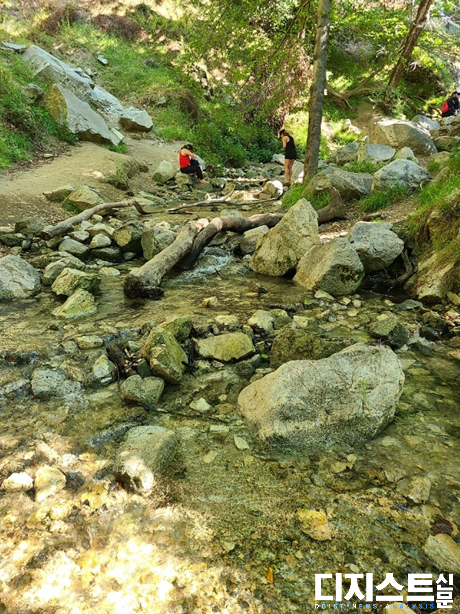 등산을 시작하면 등산로 입구부터 퍼스트 워터(First Water)까지 2.4km의 꽤 가파른 오르막을 오르게 된다. 이 구간은 내리막이 없는 데다 나무가 말 그대로 한 그루조차 없어 잠시 쉬어갈 수 있는 곳조차 없었기 때문에 개인적으로 가장 힘든 구간이었다. 쉬지 않고 오르다 보면 퍼스트 워터 분기점을 지나게 된다. 퍼스트 워터는 이름 그대로 등산로에서 첫 번째로 접근이 가능한 물가이다. 분기점에 도착하면 잠시 계곡으로 이어진 샛길로 들어가 시원한 물로 뜨거워진 몸을 식힌 후 출발하자. 아직 갈 길이 멀기 때문이다.