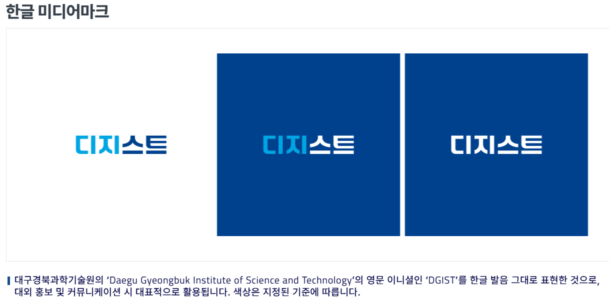 DGIST보다 먼저 미디어마크를 도입한 GIST는 미디어마크의 기획 의도, 디자인에 담긴 GIST의 정체성을 포함한 가이드를 9페이지에 걸쳐 세세하게 담았다. 이를 통해 미디어마크 사용자들이 원래 의도된 대로 사용하여 시인성을 헤치지 않고 브랜드 평판을 유지할 수 있도록 하고 있다. 그러나 뒤늦게 업로드된 DGIST의 미디어마크 가이드에는 ▲로고 공간규정 ▲주 색상 ▲사용 금지 규정 등 디자인 규정에 관한 내용만 있을 뿐 이 미디어 마크의 기획 의도, 디자인에 담긴 정체성을 알 수 없다.